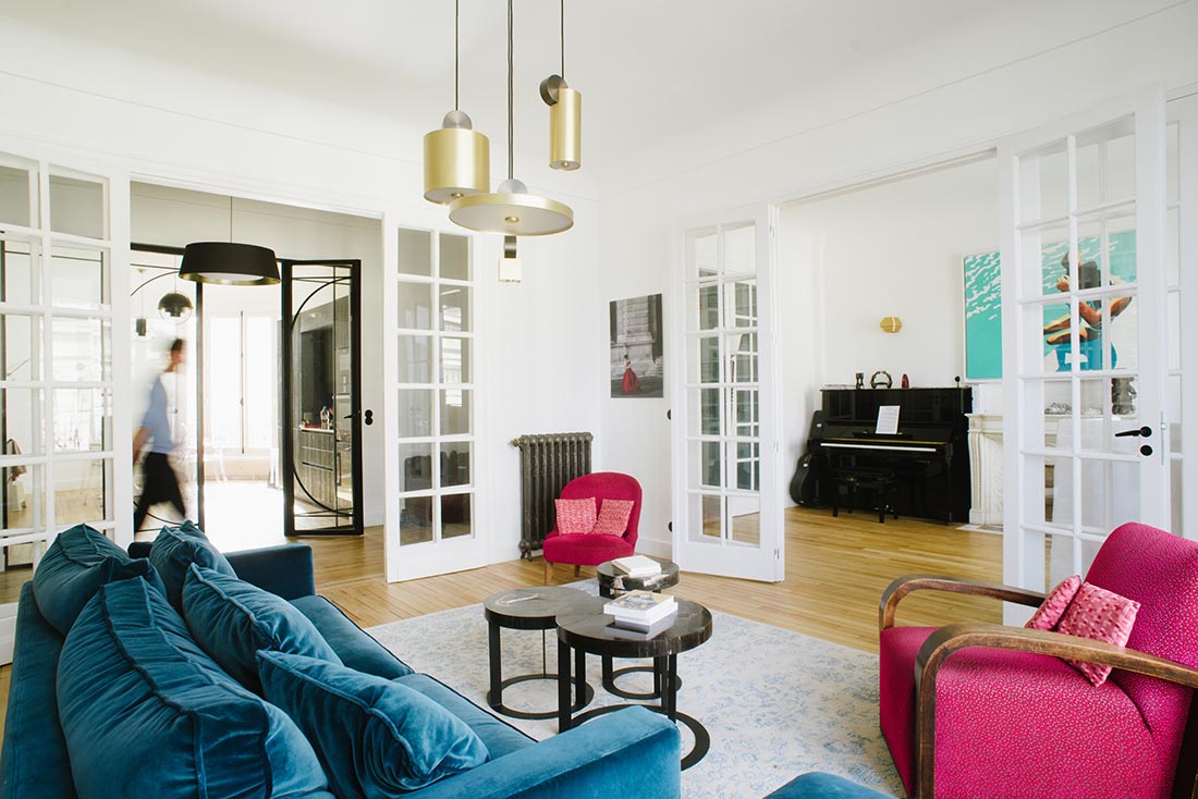 Face à l’aile droite du Panthéon, au 5eme étage d’un bel immeuble art Déco de 1926, un appartement se libère pour accueillir une famille de 5 personnes. Sur la base d’un plan classique, une galerie d’entrée ouvre sur un double salon avec vue sur le Panthéon d’un côté, et de l’autre sur une salle à manger arrondie donnant sur cour. Attenante au salon et accessible depuis la galerie d’entrée, la chambre est remaniée en suite parentale avec salle de bain ; en face, un long couloir dessert les 3 futures chambres dont deux avec salle d’eau, 1 salle de bain indépendante, un sanitaire et l’espace buanderie.